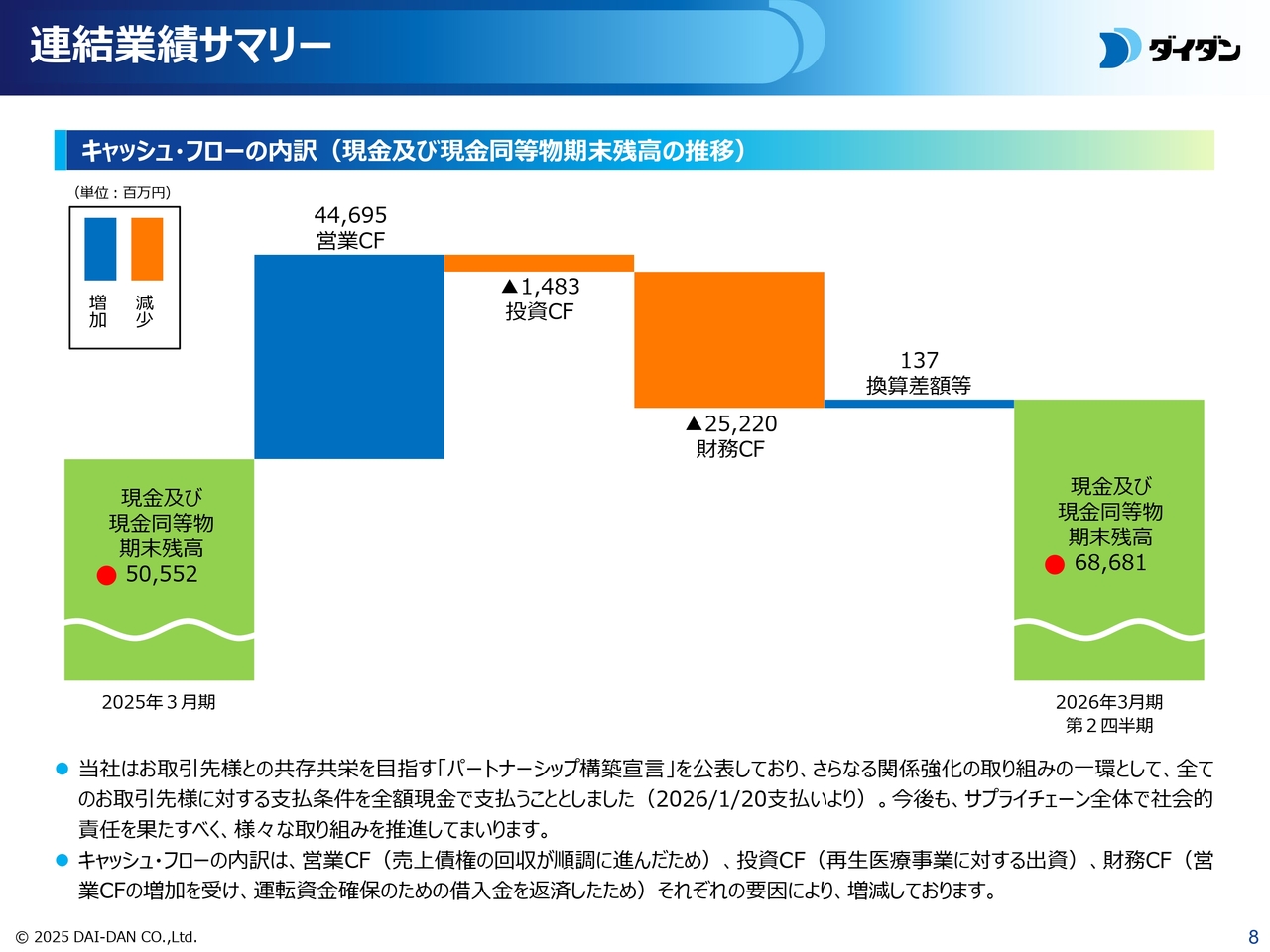 キャッシュ・フローについては、次ページのウォーターフォールチャートでご説明します。