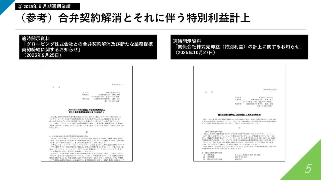 一方、当期純利益は予想を上回る結果となりました。これは、関係会社であるX-AI.Laboの株式売却に伴い、純利益が予想を上回るかたちで増加したことによるものです。この件については、すでに別途開示済みです。