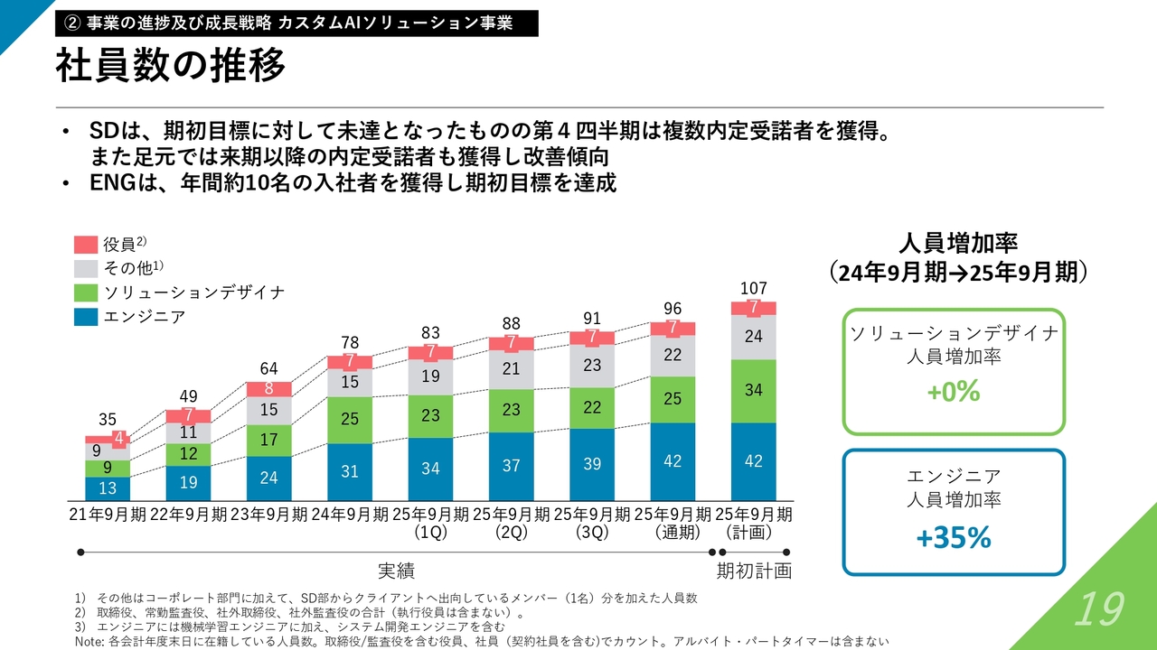 機械学習エンジニアおよびシステム開発エンジニアについては、2025年9月期の計画どおりに進捗できました。