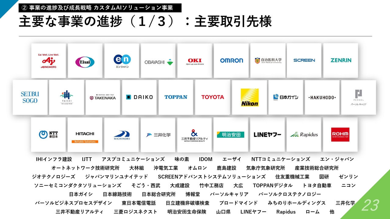 主要な事業の進捗(1/3):主要取引先様