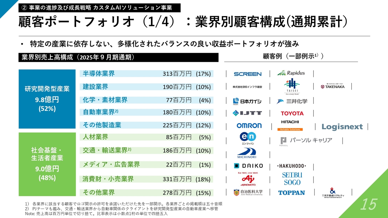 顧客ポートフォリオ(1/4):業界別顧客構成(通期累計)