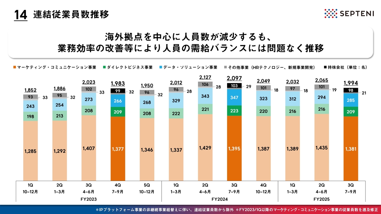 本年度は、販売管理費の調整を含め、生産性の推移を追いながら中途採用をコントロールしています。来年度も引き続き、業績の進捗や生産性の状況を確認しつつ、人員採用数の増減をコントロールしていく方針です。
