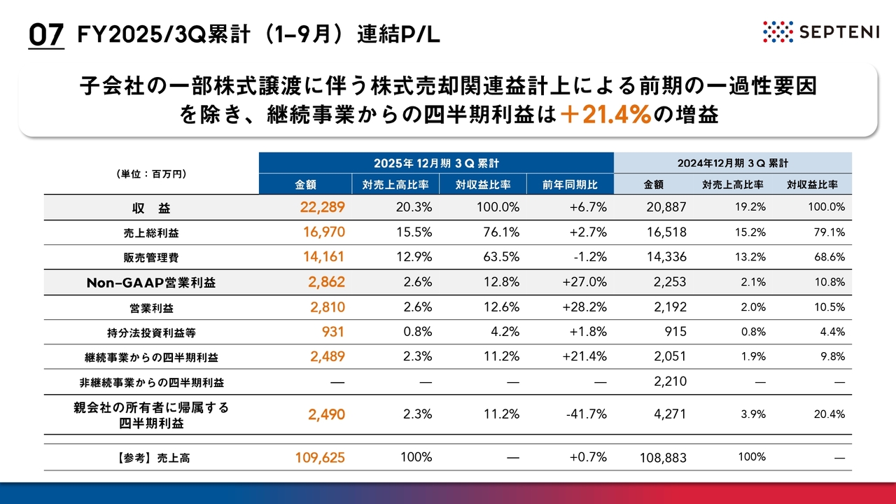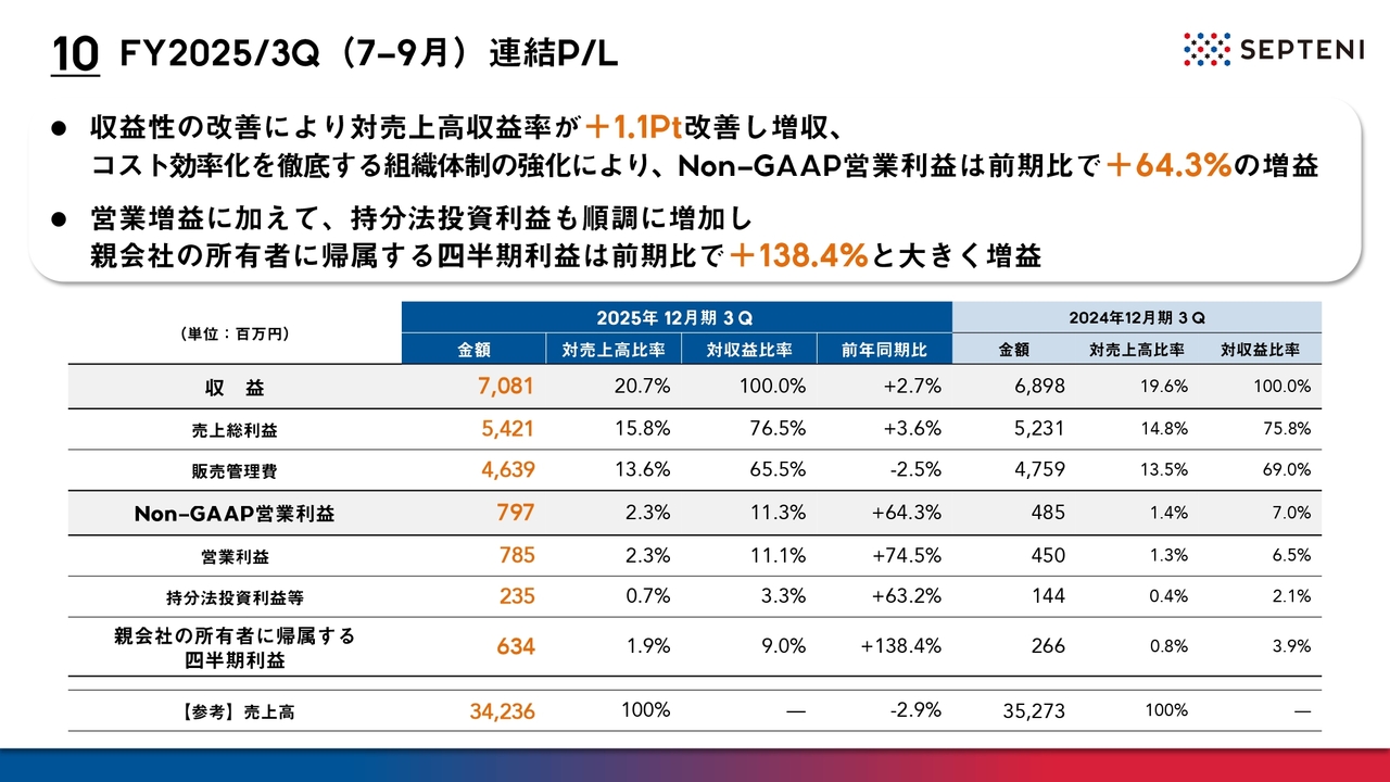 神埜雄一氏(以下、神埜):株式会社セプテーニ・ホールディングス代表取締役グループ社長執行役員の神埜です。2025年12月期第3四半期の決算について、私よりご説明します。