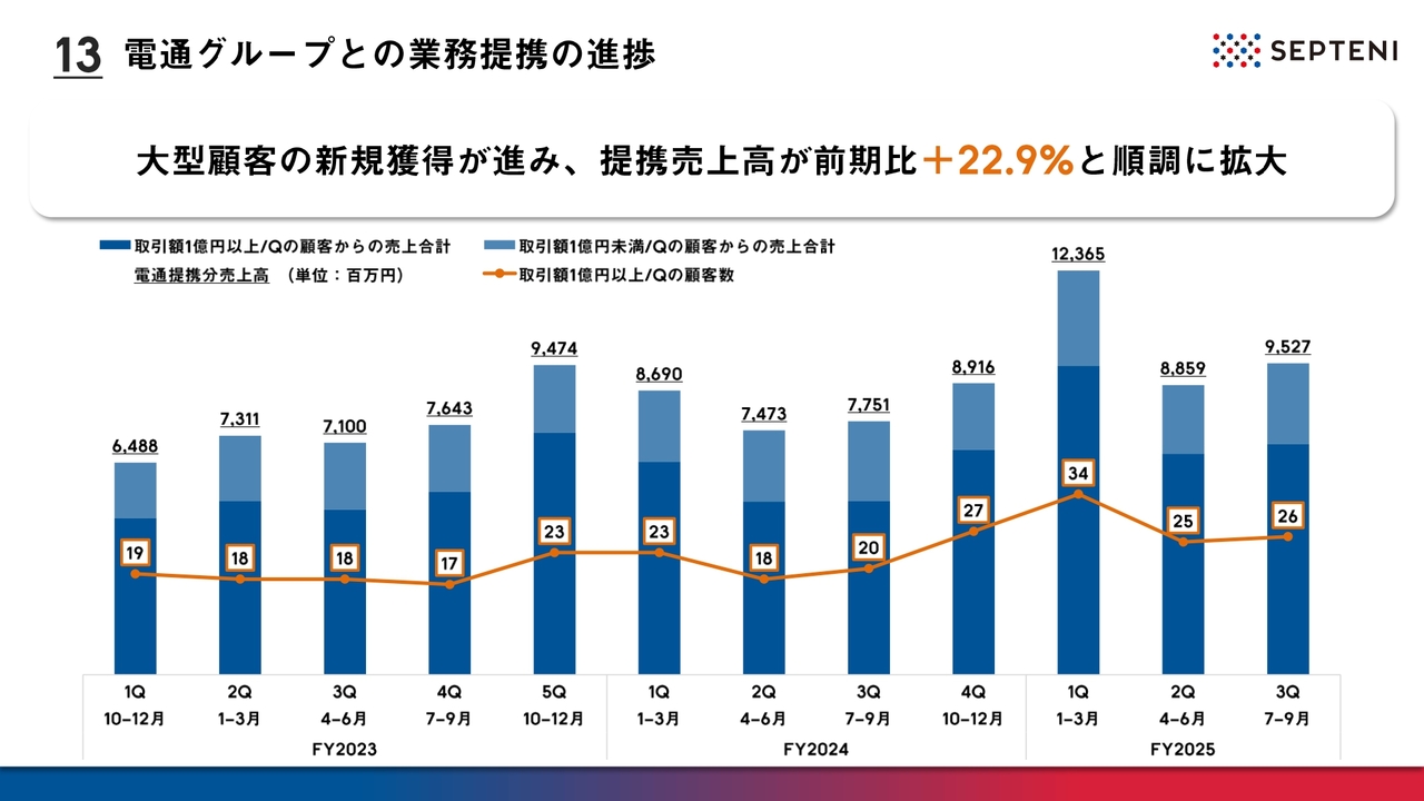 この四半期において、大型顧客の新規獲得が進み、提携売上高は前期比22.9パーセント増と順調に拡大しています。
