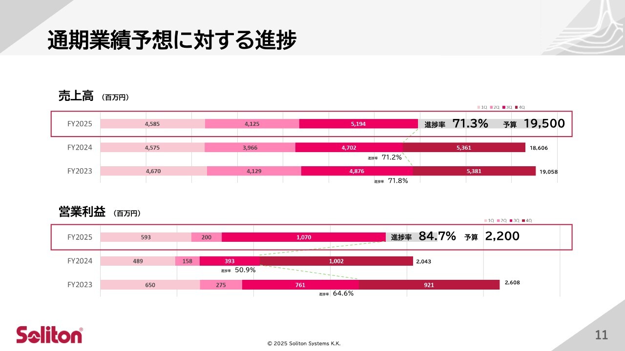 これらの取り組みの結果、第3四半期時点で自社製品の売上が大きく伸長し、営業利益は前年同期比で大幅に改善しました。