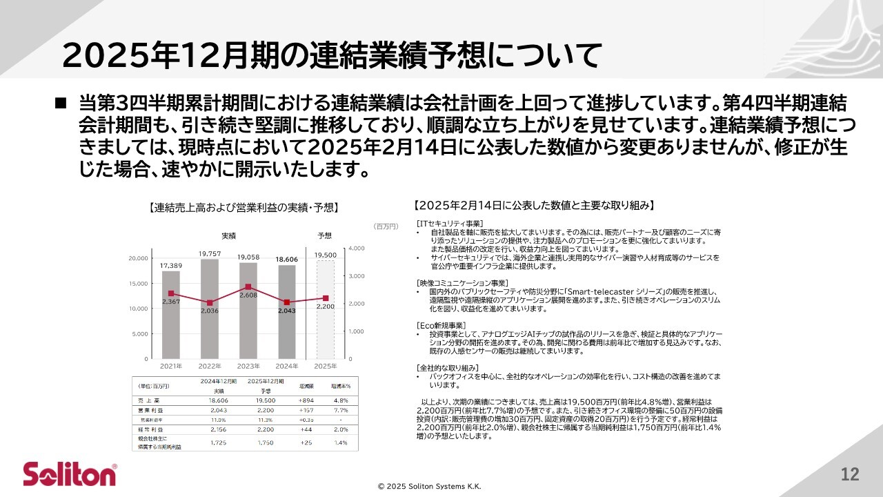 2025年12月期の連結業績予想について
