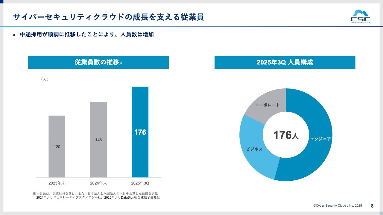 2025年の進行期全体においても、特に後半は非常にすばらしい人材が多く入社し、人数だけでなく、仲間としての強さも大きく向上していると感じています。