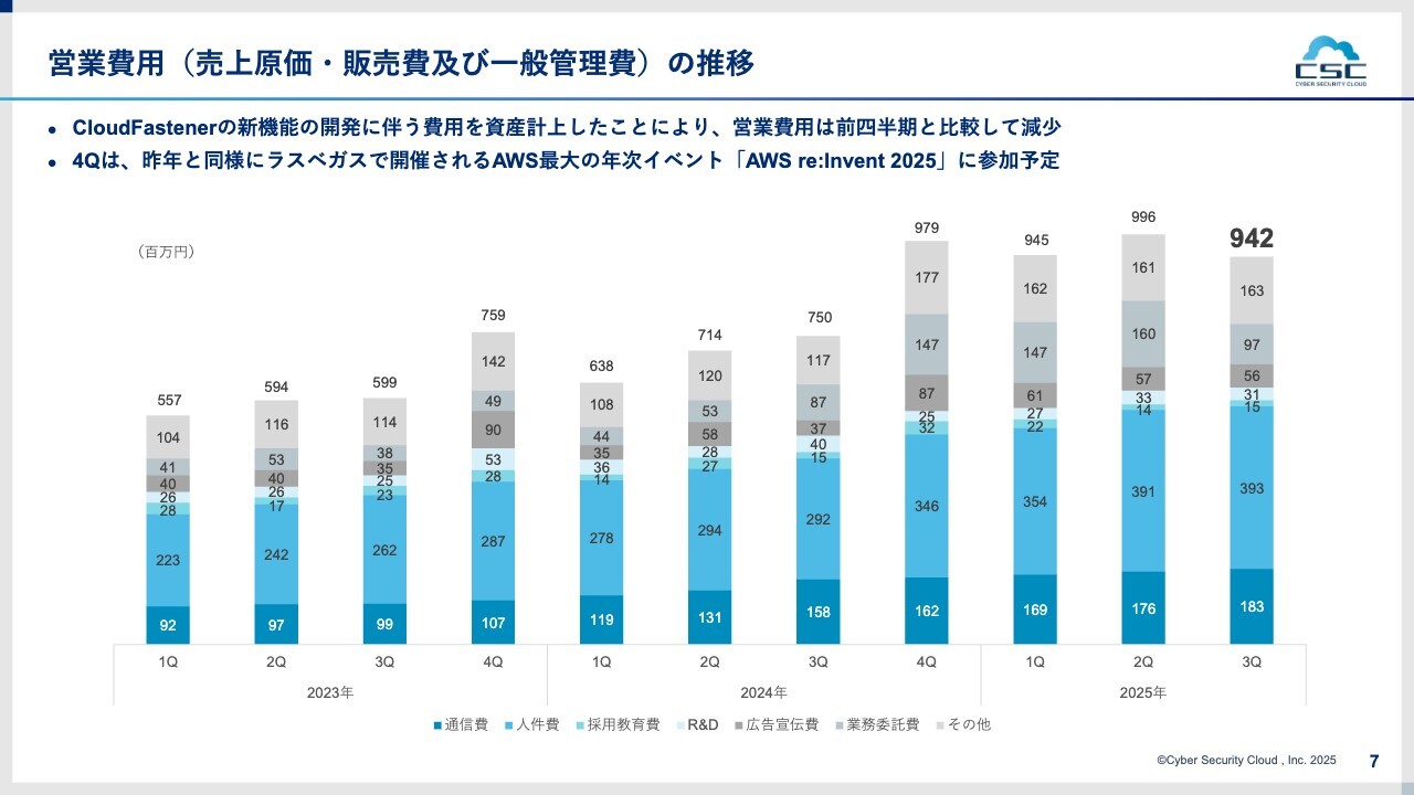 第4四半期については、当社にとって恒例化しつつある、12月にアメリカ・ラスベガスで開催される非常に大きなカンファレンスに出展を予定しています。そのため、これまでの四半期と比べて費用が一部増加する見込みです。