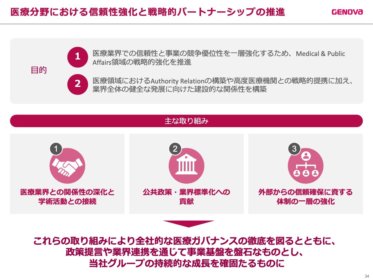 一方で課題となっているのは、医科の分野です。今後は、特に医科領域におけるAuthority Relationの構築や高度医療機関との戦略的な提携に注力していきます。Medical & Public Affairsの領域においても、戦略的に推進し、リアルな関係性を構築することを目的としています。