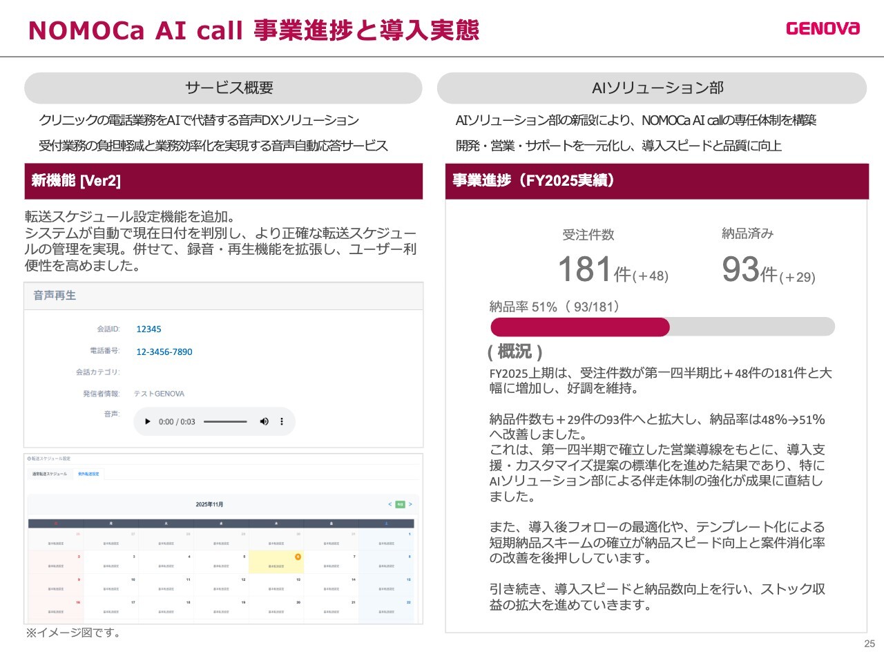 一方、前期第3四半期にトライアルを開始した「NOMOCa AI call」の導入件数は増加傾向にありますが、現時点では販売進捗において大きな貢献には至っていません。ただし、導入件数が毎月着実に増加しているため、時間はかかってしまいましたが、今後はさらなる成長が見込まれると考えています。