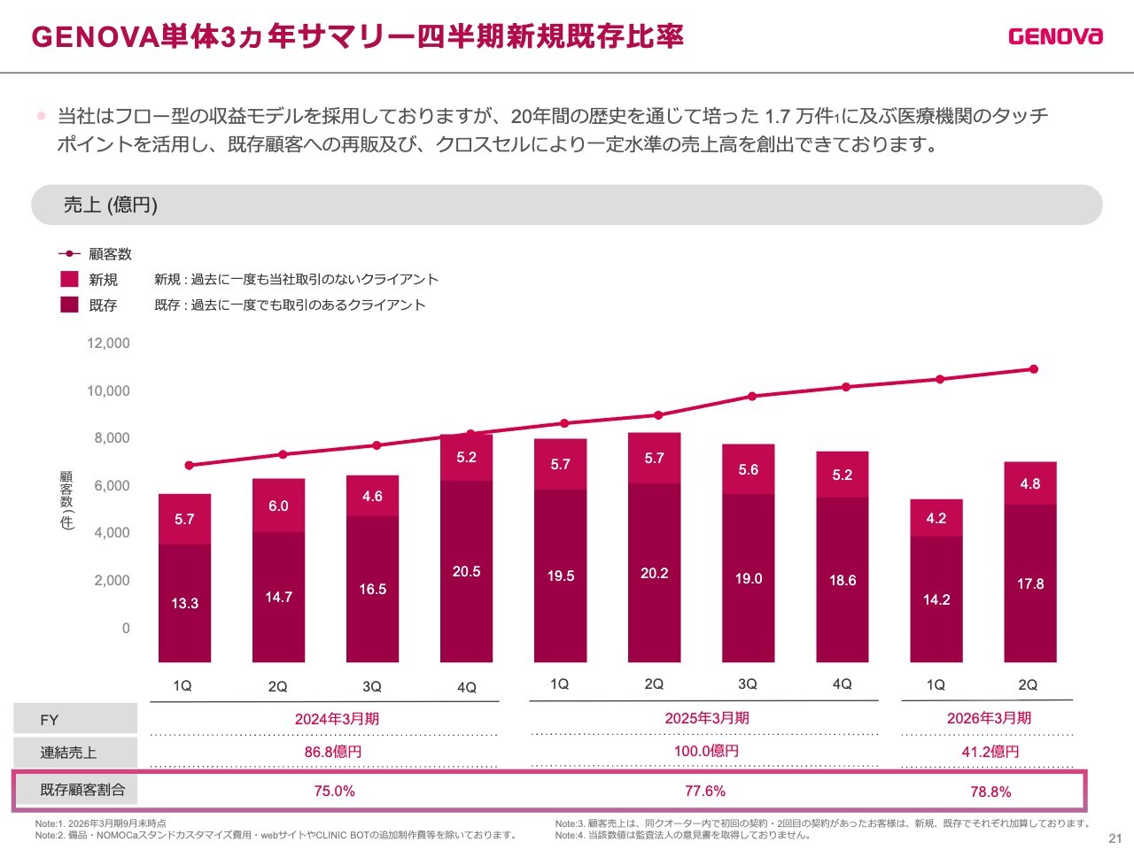 GENOVA単体3ヵ年サマリー四半期新規既存比率