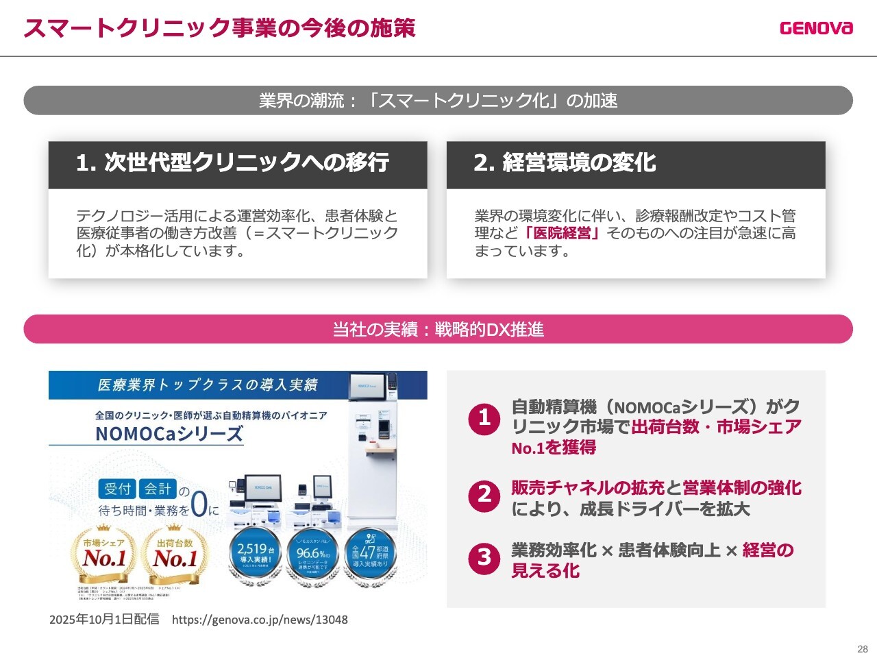 それでも経験を重ねている状況であり、今後はスマートクリニック部門のさらなる強化と営業力の向上に向けて取り組んでいきます。