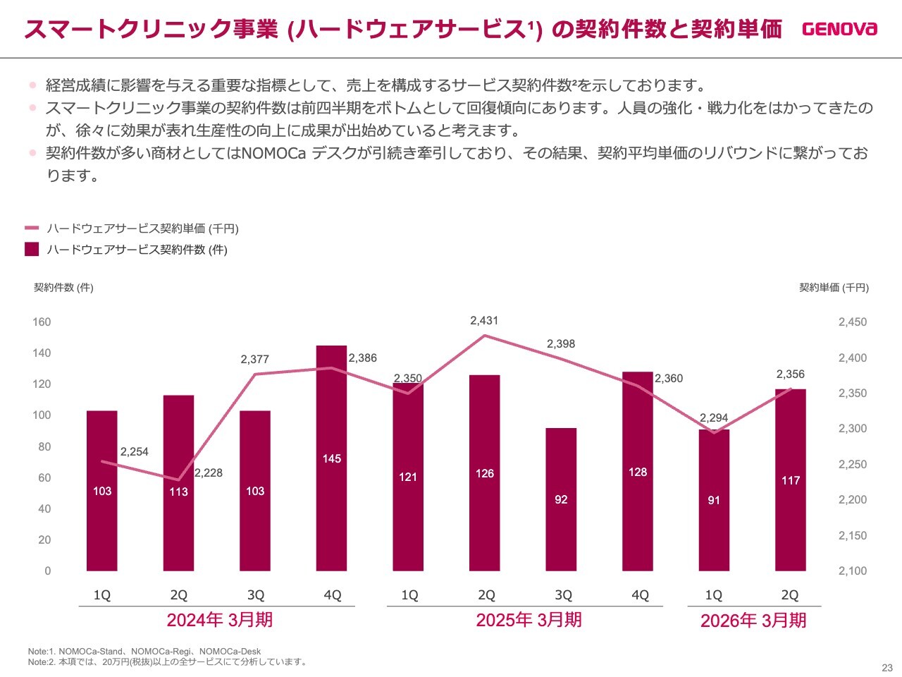 スマートクリニック事業の契約件数は、前四半期を底として回復傾向にあります。人員の強化や戦略化を進めてきた結果、徐々に効果が表れ、生産性向上の成果が出始めていると考えています。