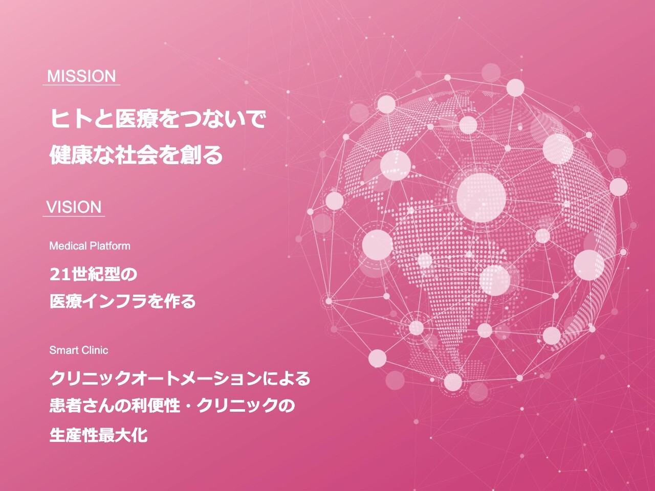 まずは、事業概要です。「ヒトと医療をつないで健康な社会を創る」というミッションの下、2つの事業を展開しています。