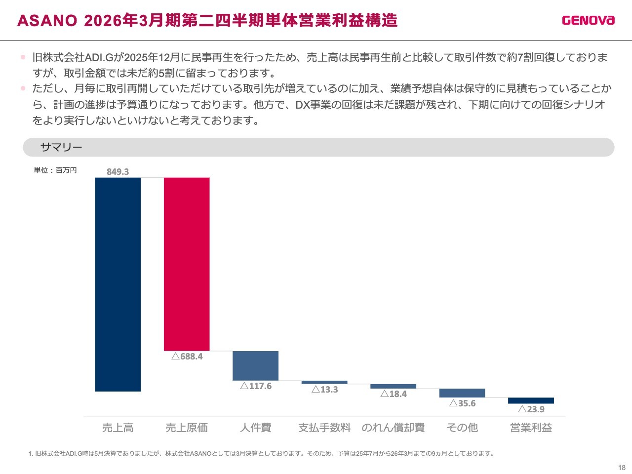 ASANO 2026年3月期第二四半期単体営業利益構造