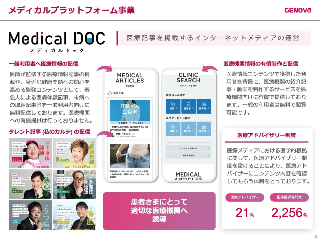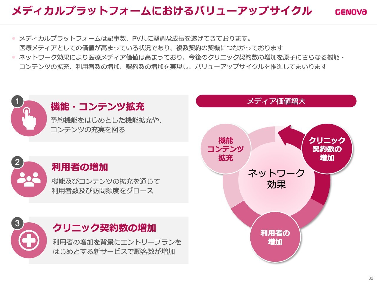 また、医療機関との強力なネットワークを活用し、当社しか提供できない情報を提供しています。この強みを十分に発揮することで、アクセス数や質を強化し、ユーザー価値が向上すると考えています。