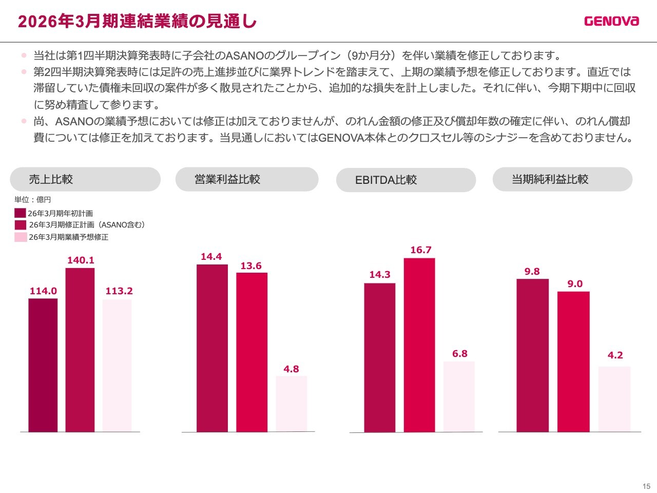 なお、この見直しには、GENOVA本体とのクロスセルシナジーは含まれていません。