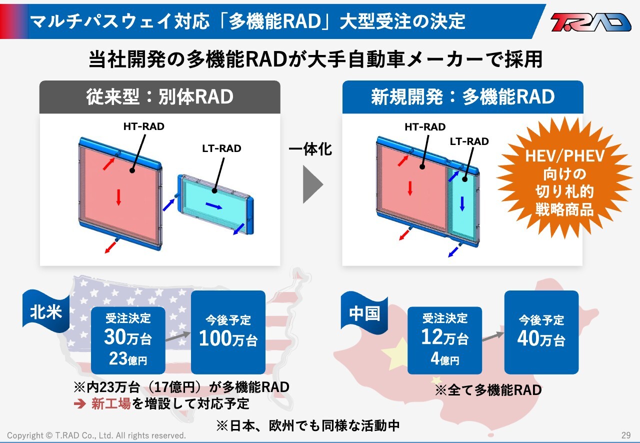 多機能RADは、ハイブリッド、プラグインハイブリッド向けの製品として、切り札的な製品だと考えています。これによって、北米や中国での販売台数、売上が増加すると見込んでいます。