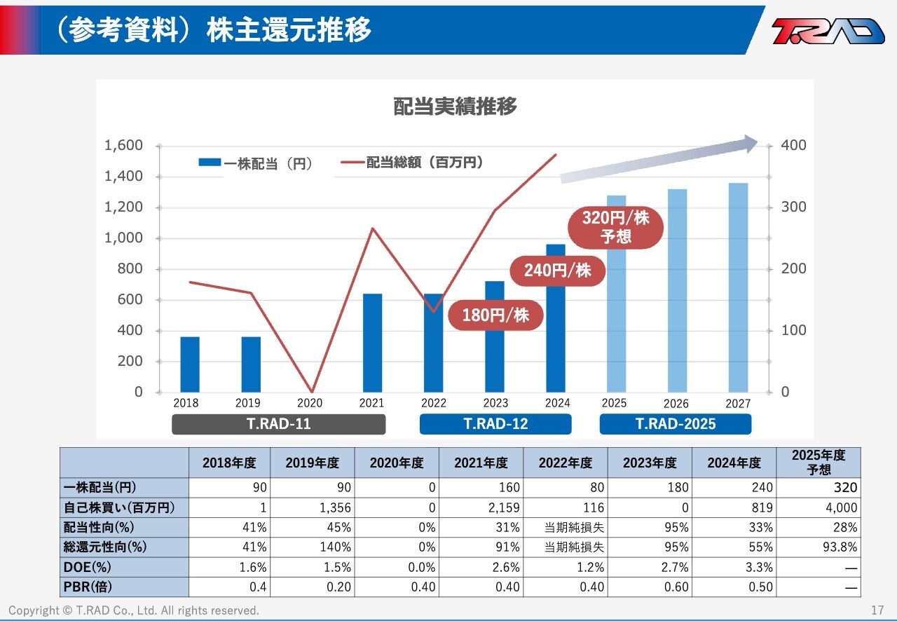 また、期末の配当予想についても同様に160円とし、年間320円の配当予想とすることを昨日の取締役会で決議しています。2025年度は、合計40億円の自己株買いも進めており、総還元性向は90パーセントを超える見通しとなっています。