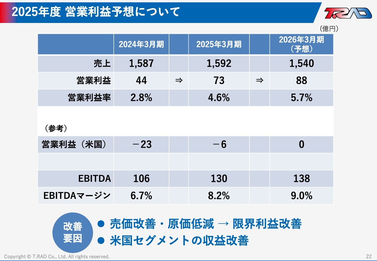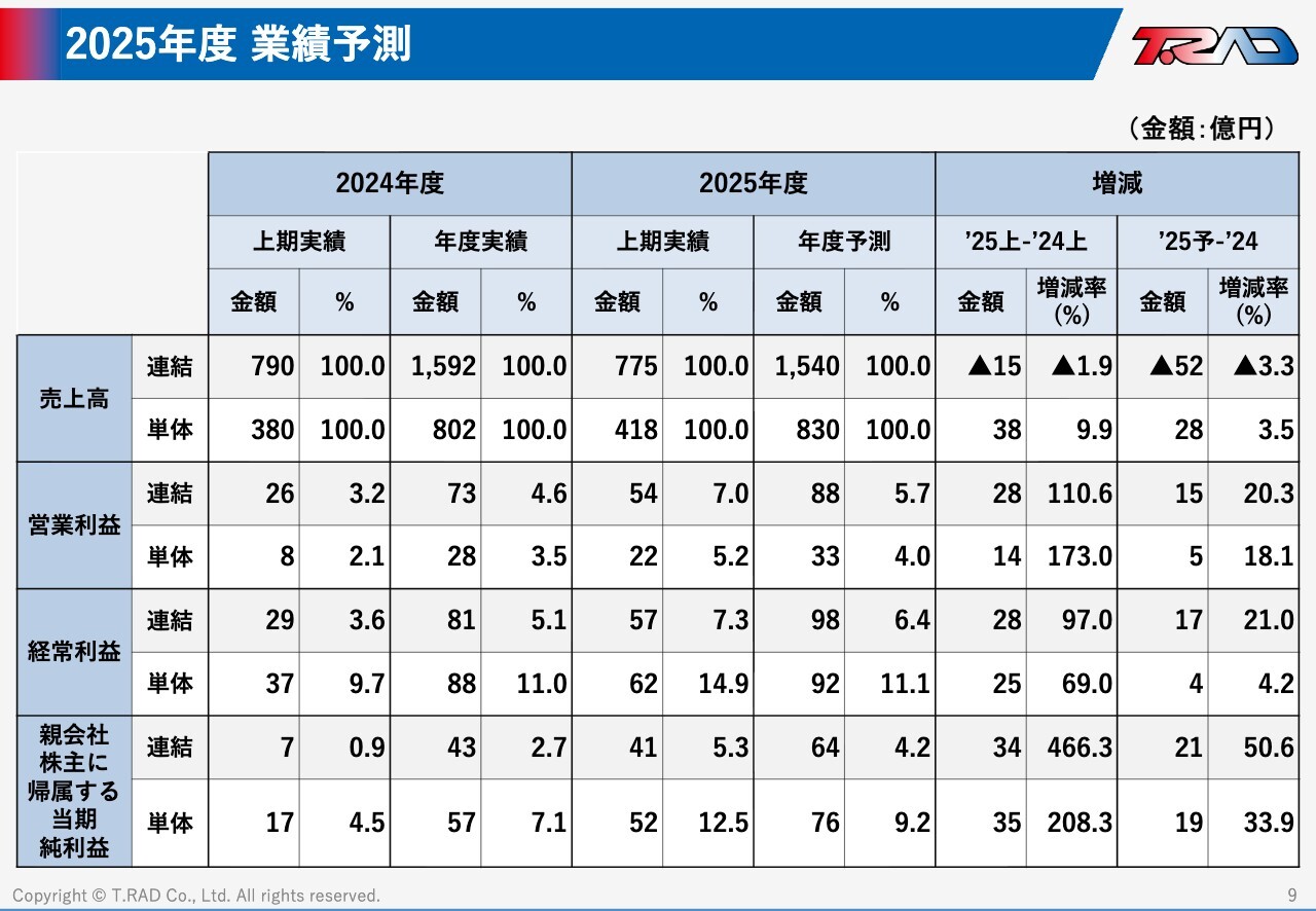今年度、2025年度も通期ベースで、利益額、利益率ともに前年度対比で向上する予想としています。売価改善、生産性向上努力が徐々に効果を発揮しているものと理解しています。
