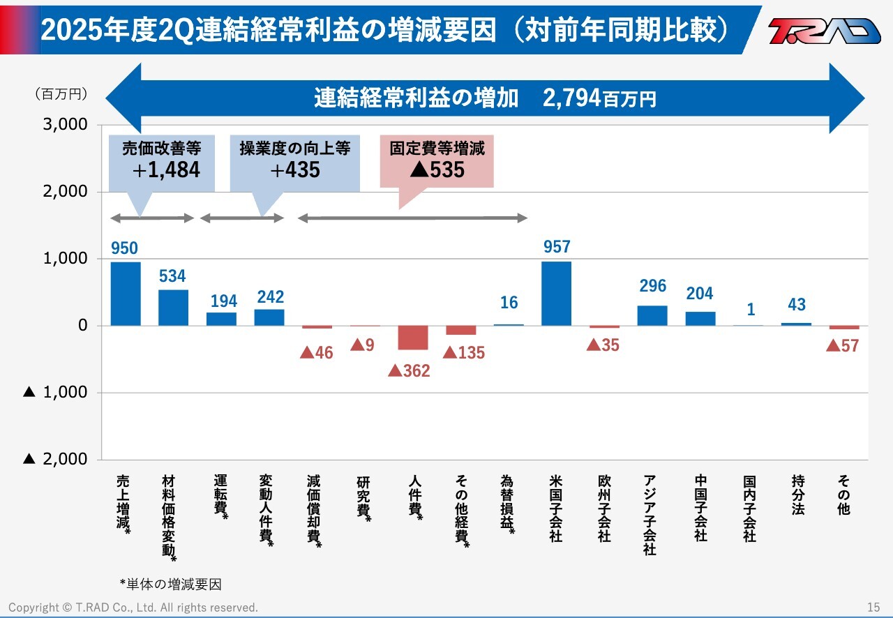 利益項目は、増収による限界利益の嵩上げ、米国関税における取引先への転嫁交渉の進捗等も盛り込み、前回予想比20億円超の上方修正としました。