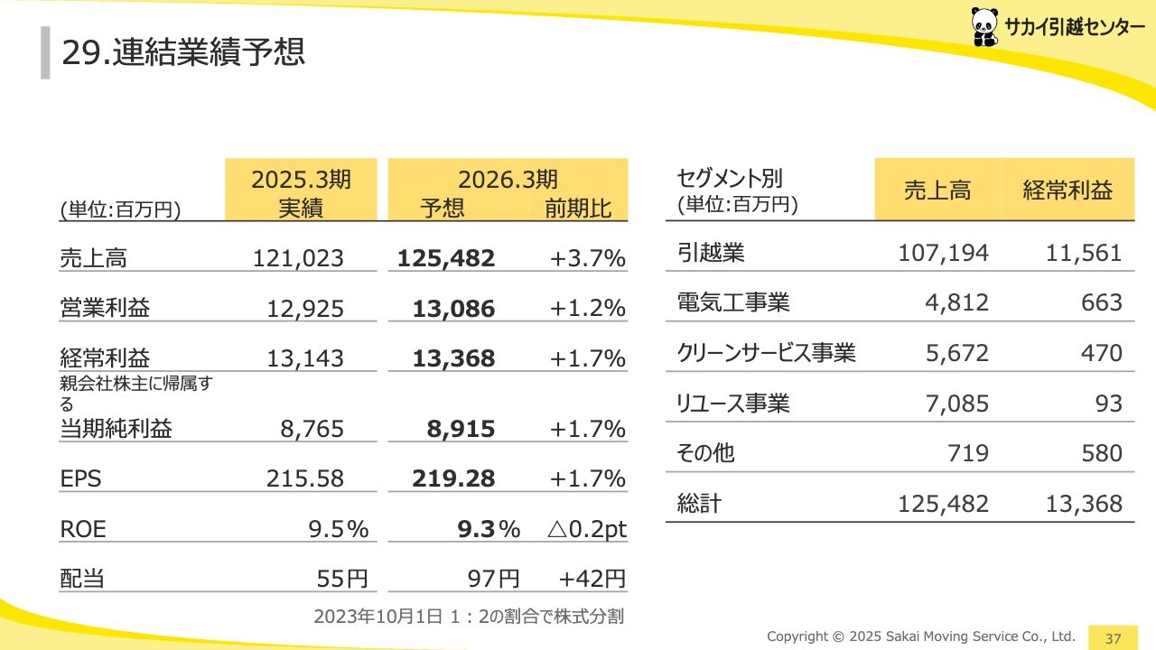 【QAあり】サカイ引越センター、各事業堅調に推移し売上高は前期比2.6%増 引越・電気工事・クリーンサービスともに堅調