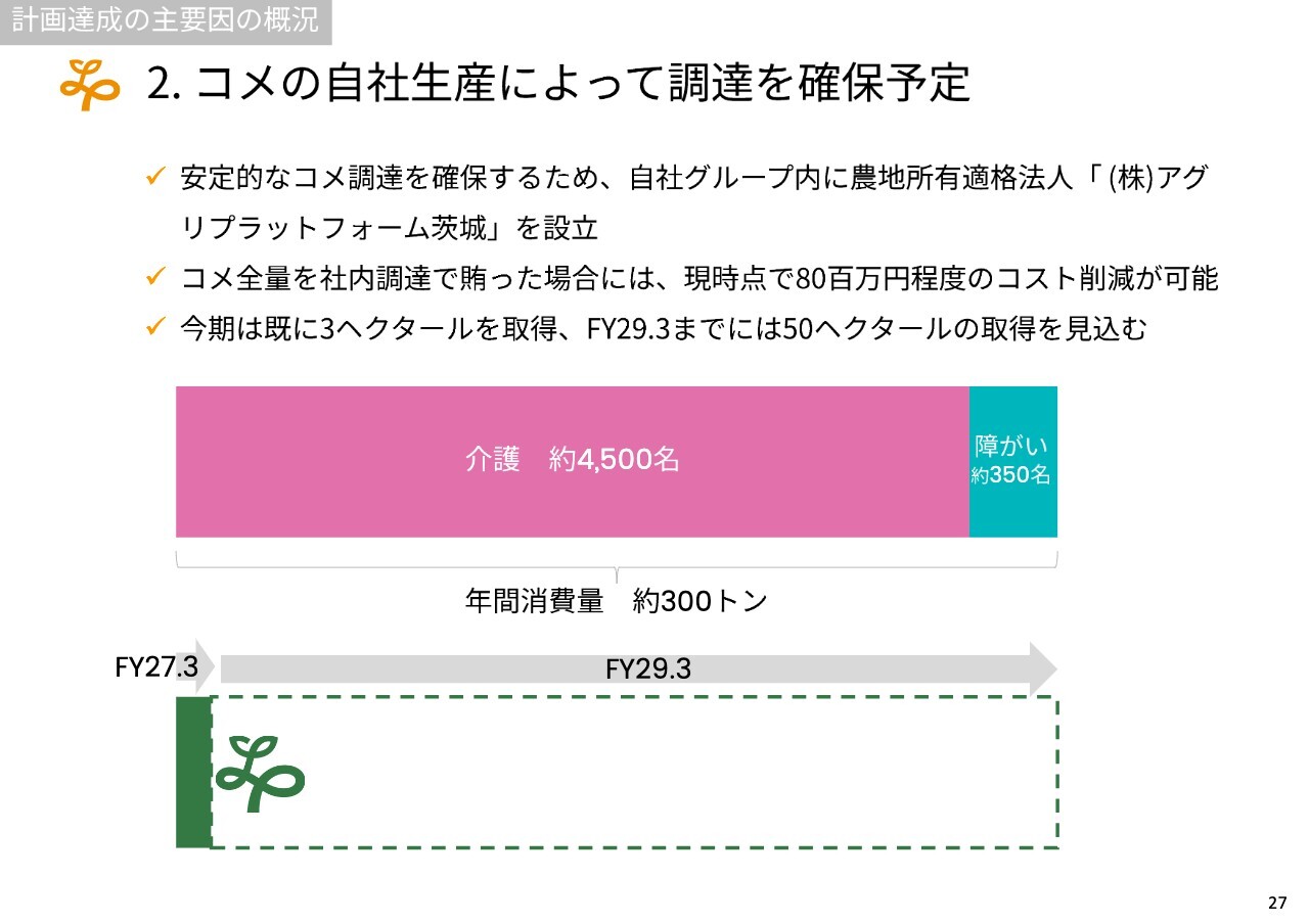 2.コメの自社生産によって調達を確保予定