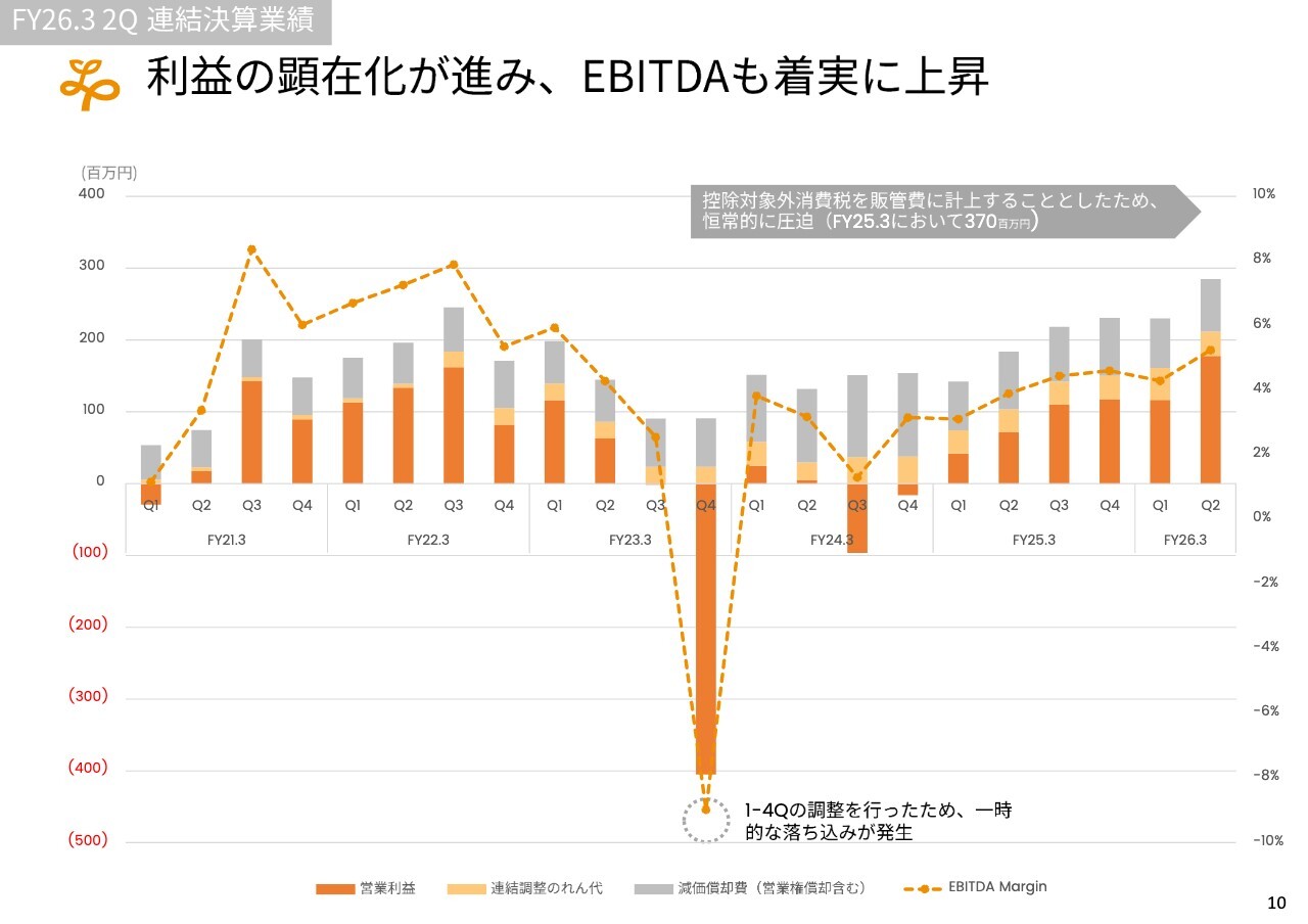 EBITDAについては、第2四半期に特に伸びが見られ、今後さらに伸びると考えています。