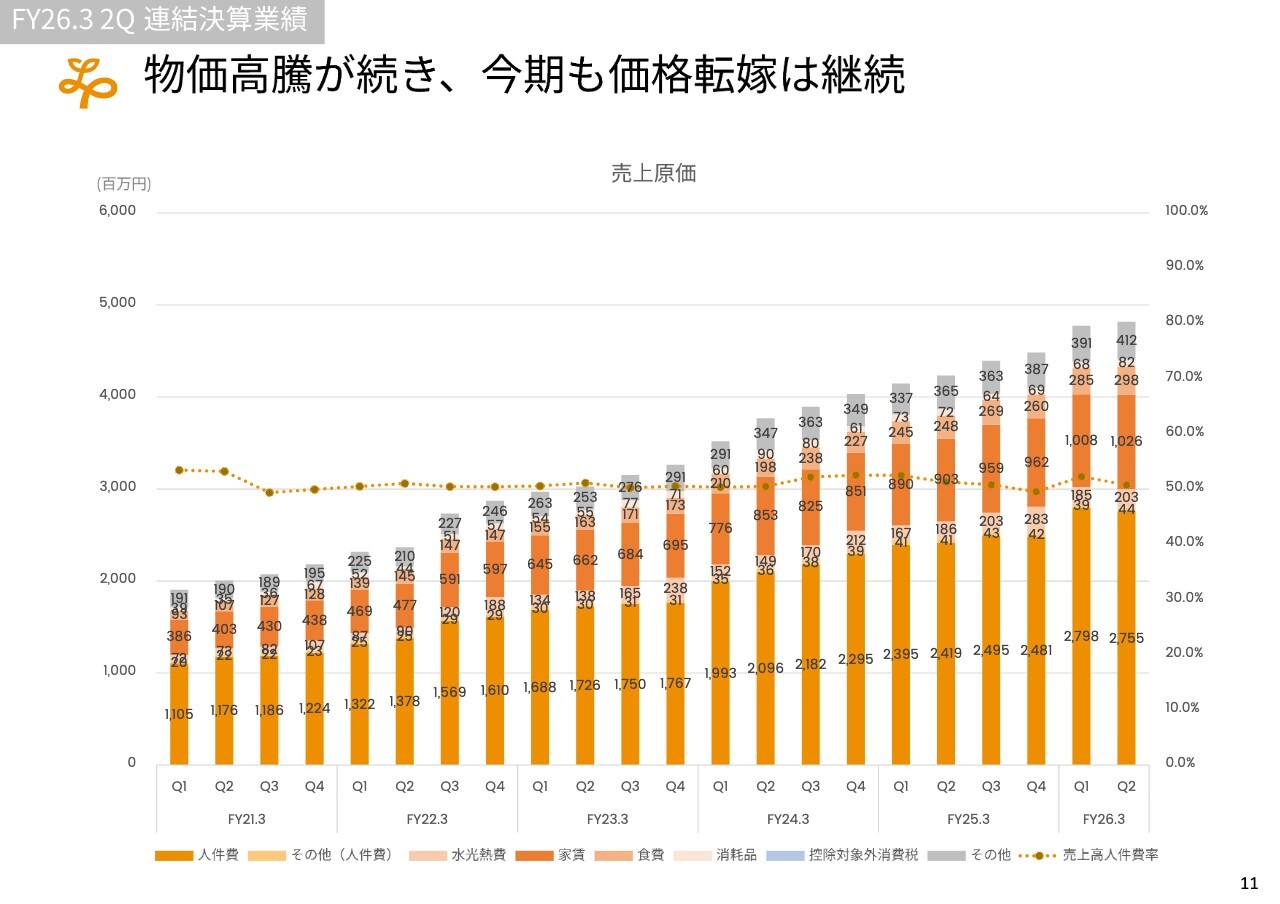 物価高騰は他の業界も含めて続いていますが、当社としては今期も十分な価格競争力があると考えています。そのため、第3四半期以降、今年度の価格転嫁を進めることで、物価上昇に対する耐性をさらに強化していきたいと考えています。