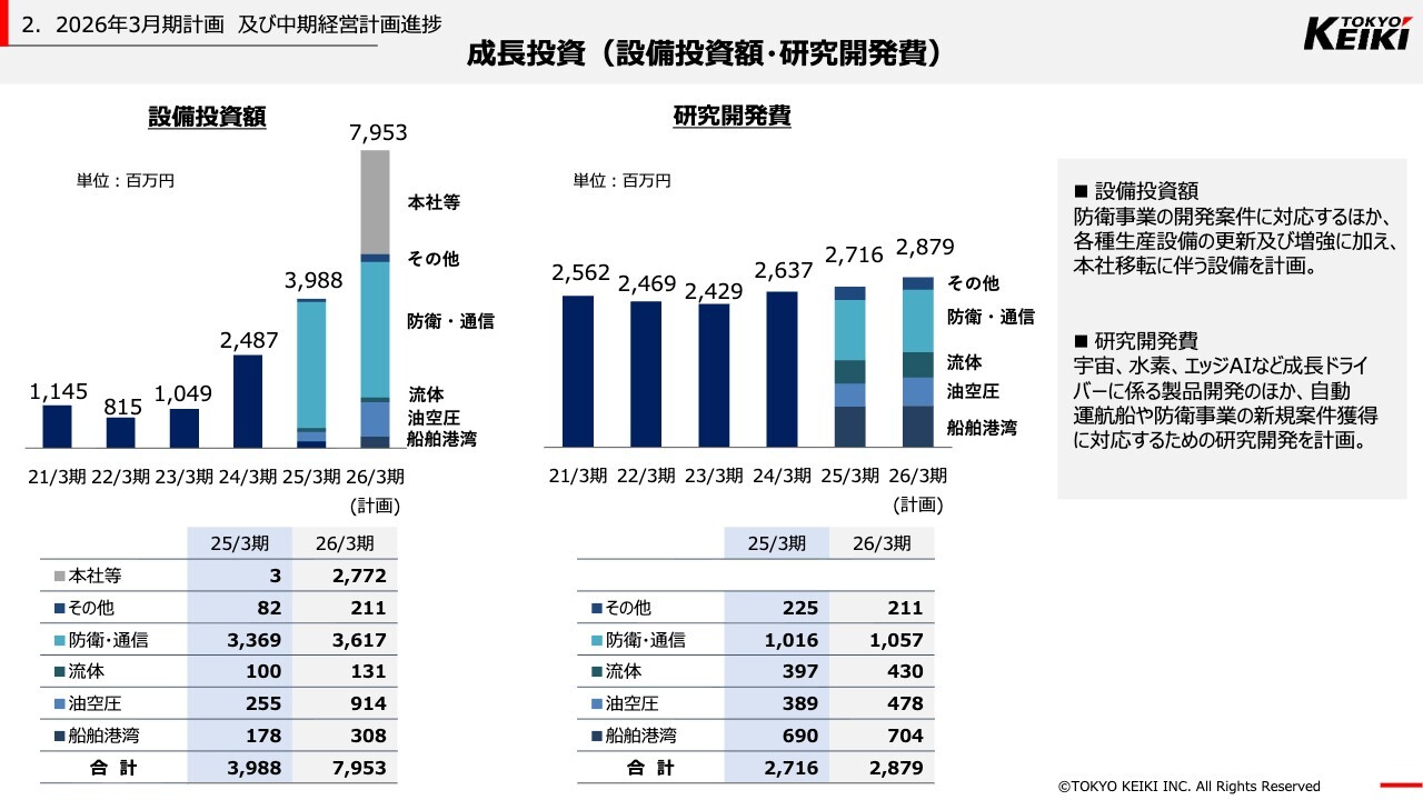 司会者:「防衛・通信機器事業の受注残高は過去最高水準ですが、防衛事業の生産能力は現状十分なのでしょうか? 2026年3月期も同事業に36億円ほど投資予定となっていますが、2027年3月期以降も同程度の投資が必要な状況でしょうか?」というご質問です。