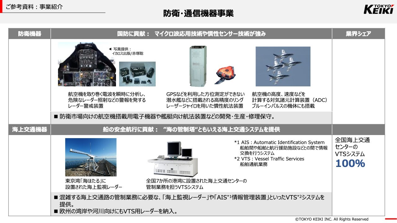 比率については、具体的な数字は開示していませんが、おおむね航空機搭載機器と艦艇搭載機器で半分ずつを占めており、年によってどちらかの割合が多くなることもあります。