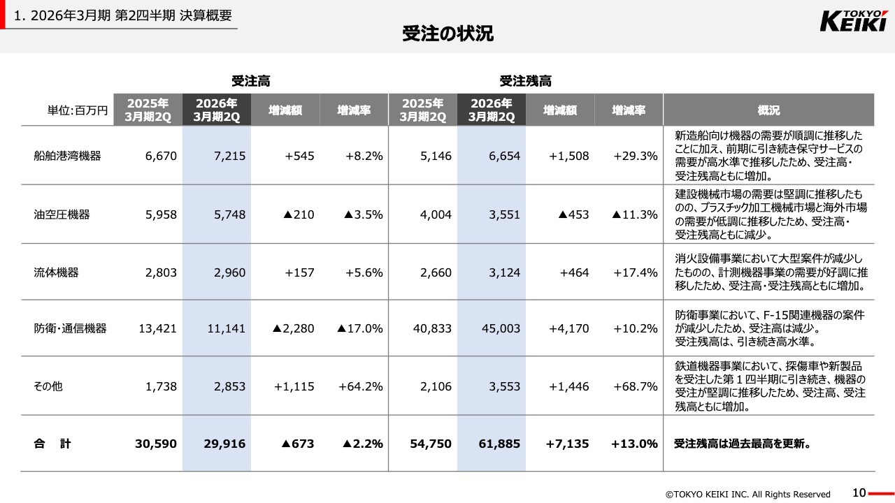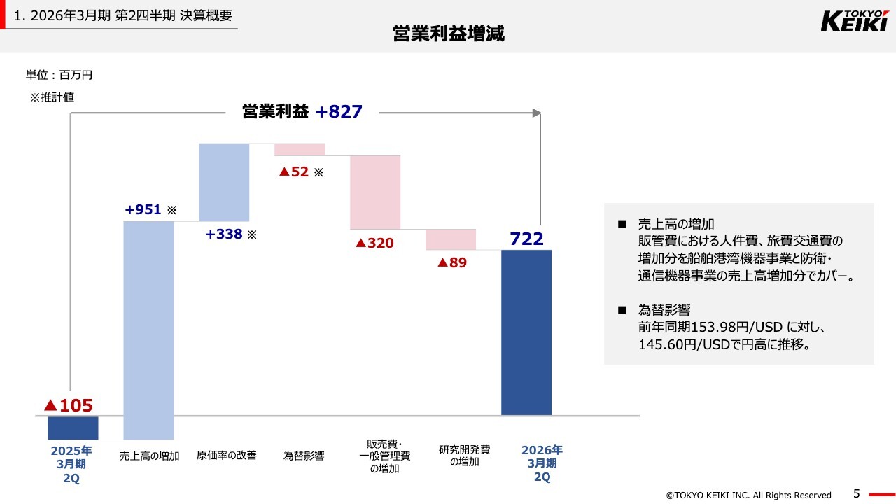 【QAあり】東京計器、4年ぶりの黒字転換を達成、2Qは大幅な増収増益 防衛・通信機器事業が引き続き好調、売上平準化の試みも寄与
