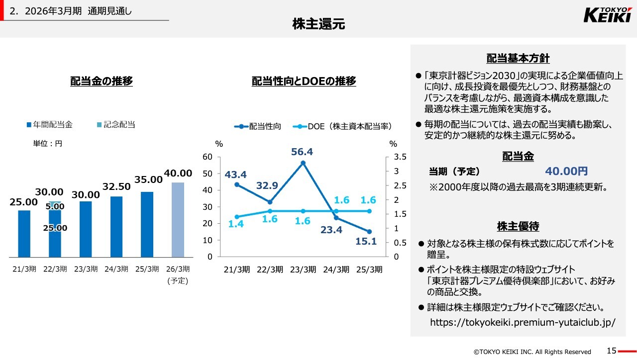 株主還元についてです。2026年3月期の配当予定は、期初計画どおり、前期比で5円増配となる1株当たり40円を予定しています。