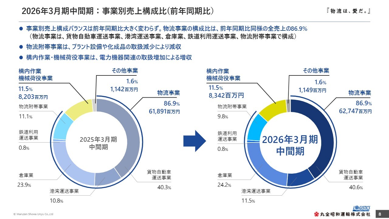 2026年3月期中間期:物流事業の内訳動向(前年同期比)