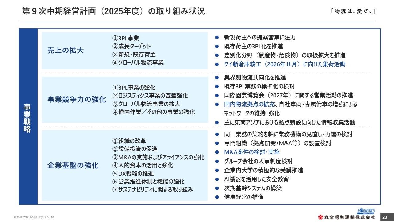 事業の進捗とトピックスについて、第9次中期経営計画(以下、第9次中計)を踏まえてご説明します。