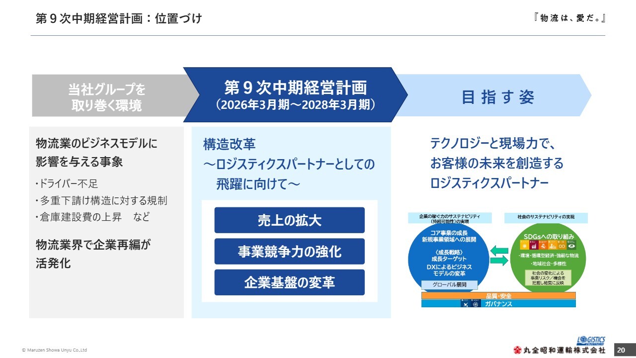 第9次中計の位置づけをあらためてご説明します。物流業界における当社グループを取り巻く環境は大きく変化しています。