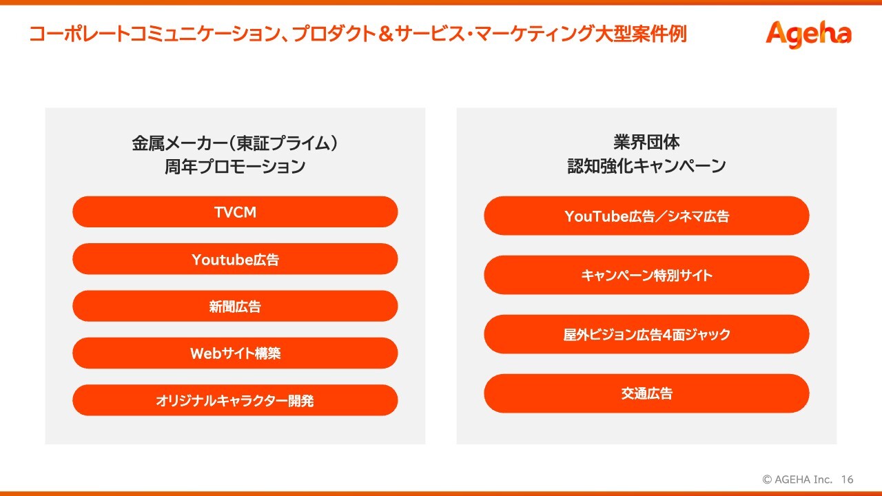 コーポレートコミュニケーション、プロダクト&サービス・マーケティング大型案件例