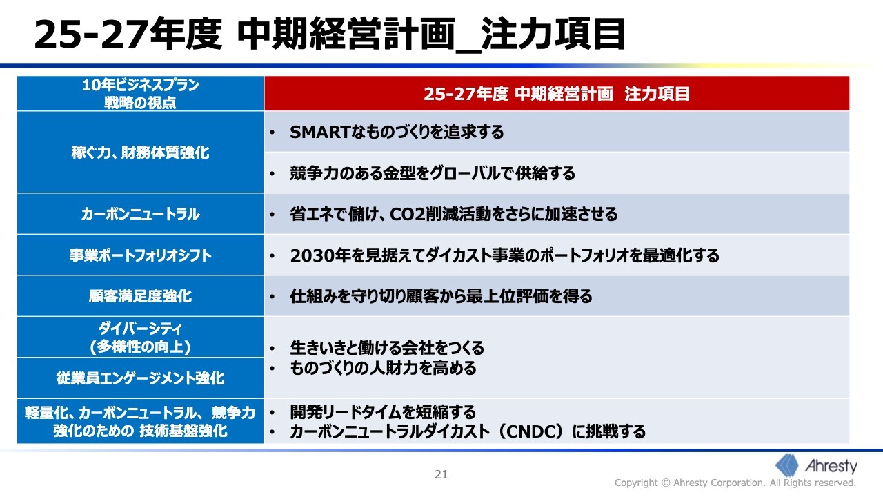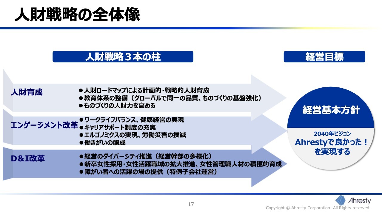 この戦略を通じて、ものづくり力をさらに高め、競争力を維持するとともに、経営基本方針と2040年ビジョンとして掲げている「Ahrestyで良かった!を実現する」を目指していきます。