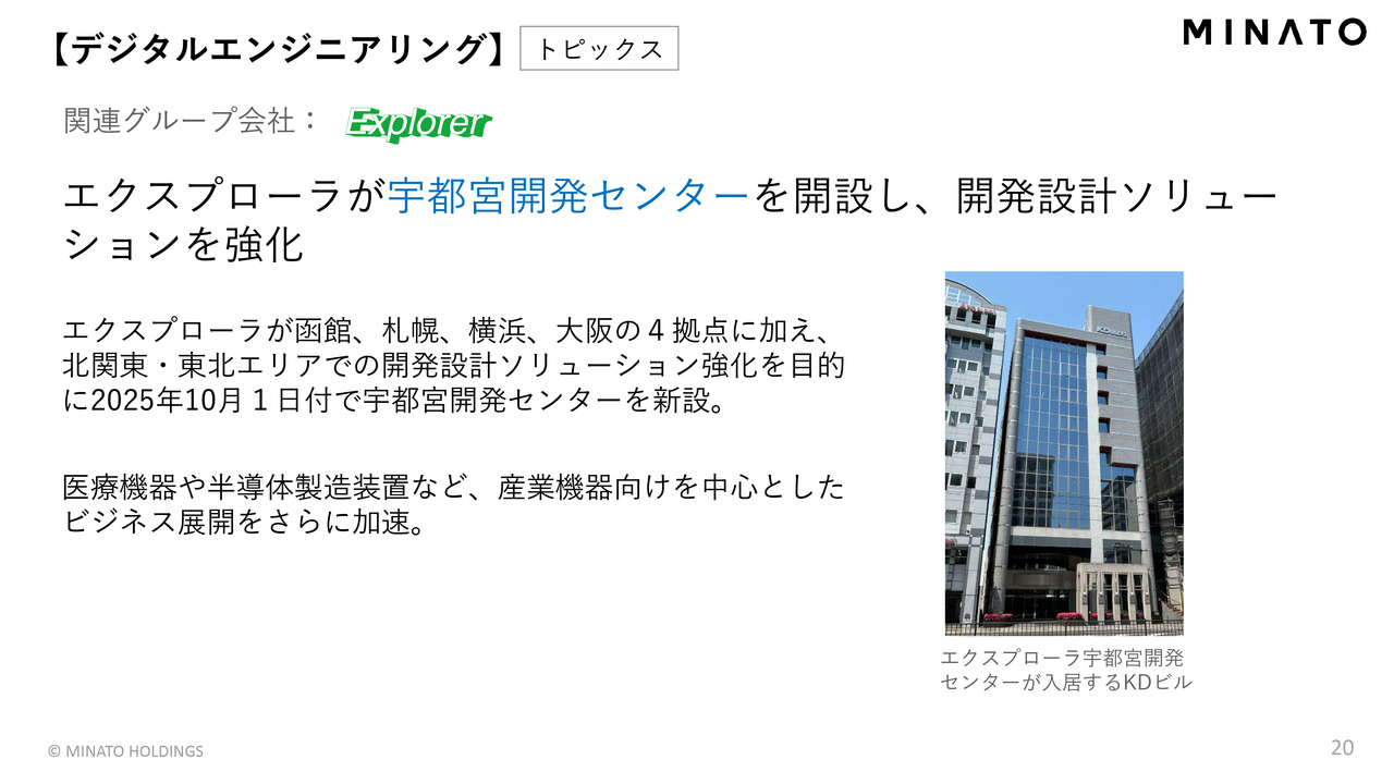 デジタルエンジニアリングにおける主なトピックスとして、エクスプローラが宇都宮開発センターを開設したことをお知らせします。
