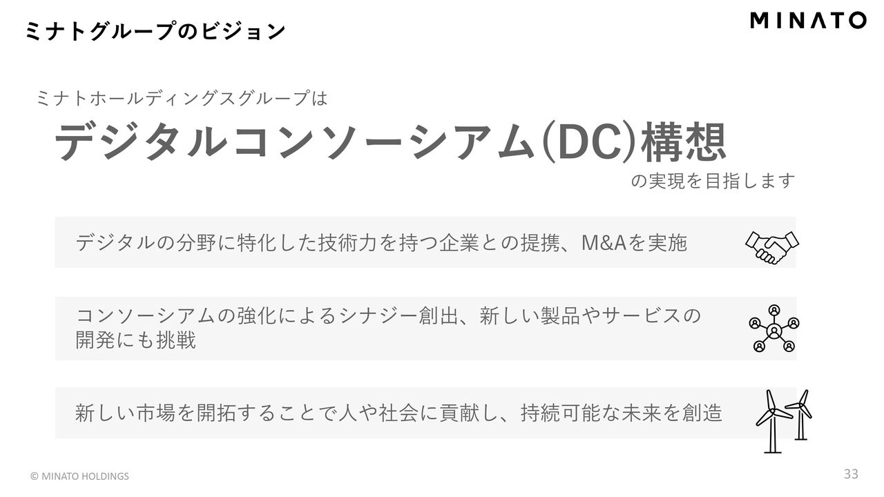 これは、デジタル企業に当社のデジタルコンソーシアム(共同体)に参加していただき、それぞれのシナジーを追求しながら事業を拡大していく取り組みです。「デジタルコンソーシアム(DC)構想」の実現に向け、これまで当社グループ一丸となって取り組んできました。