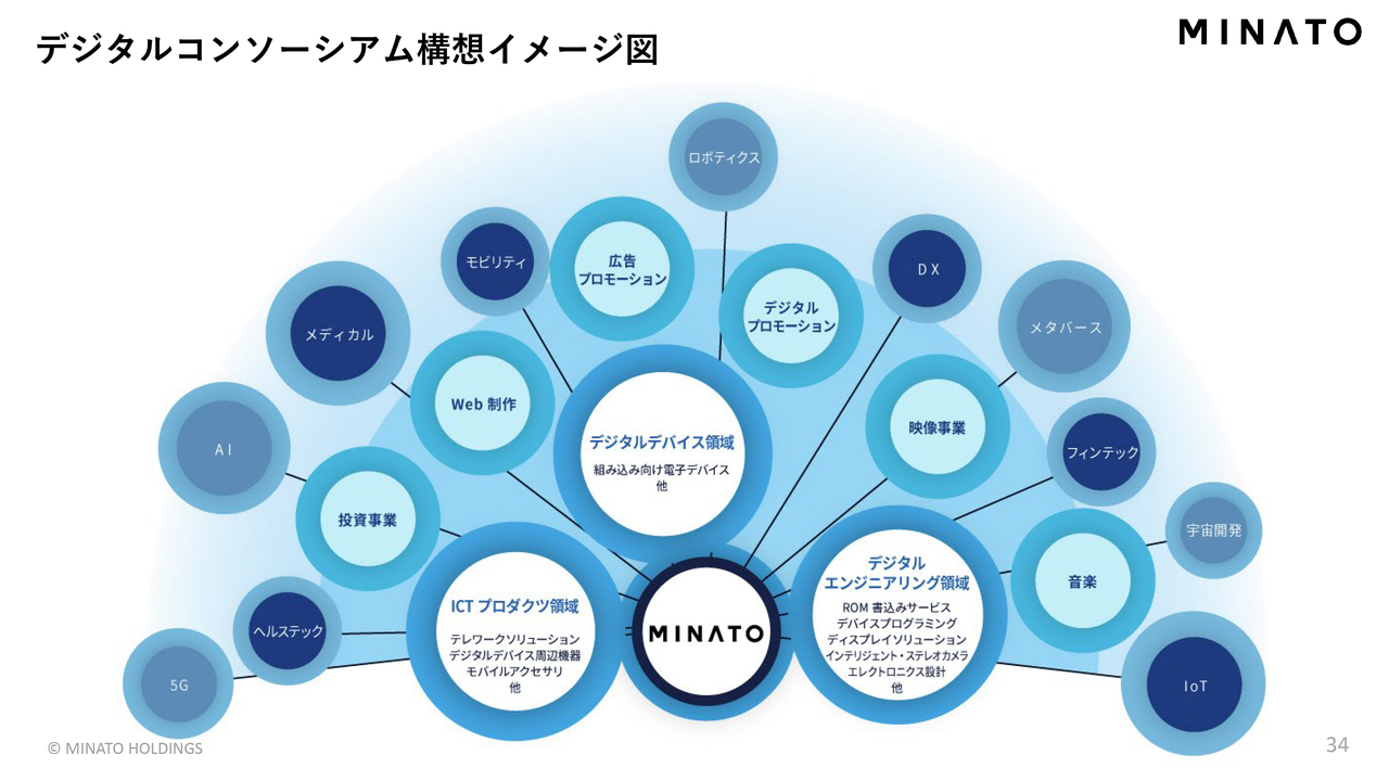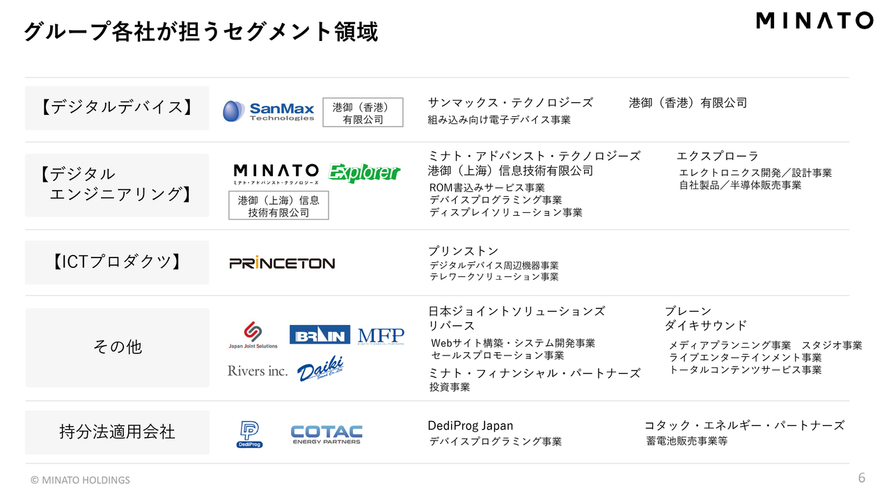 1つ目は、管理面や財務面での共通化です。ミナトホールディングスが人事・総務・経理など多様な管理業務を専門的に行っていますので、リソースをこちらに集中させることで、新たにグループ入りしたダイキサウンドやブレーンは、それぞれの強みを持つビジネスに注力・特化することが可能になっています。これがまず実際に進められている内容です。