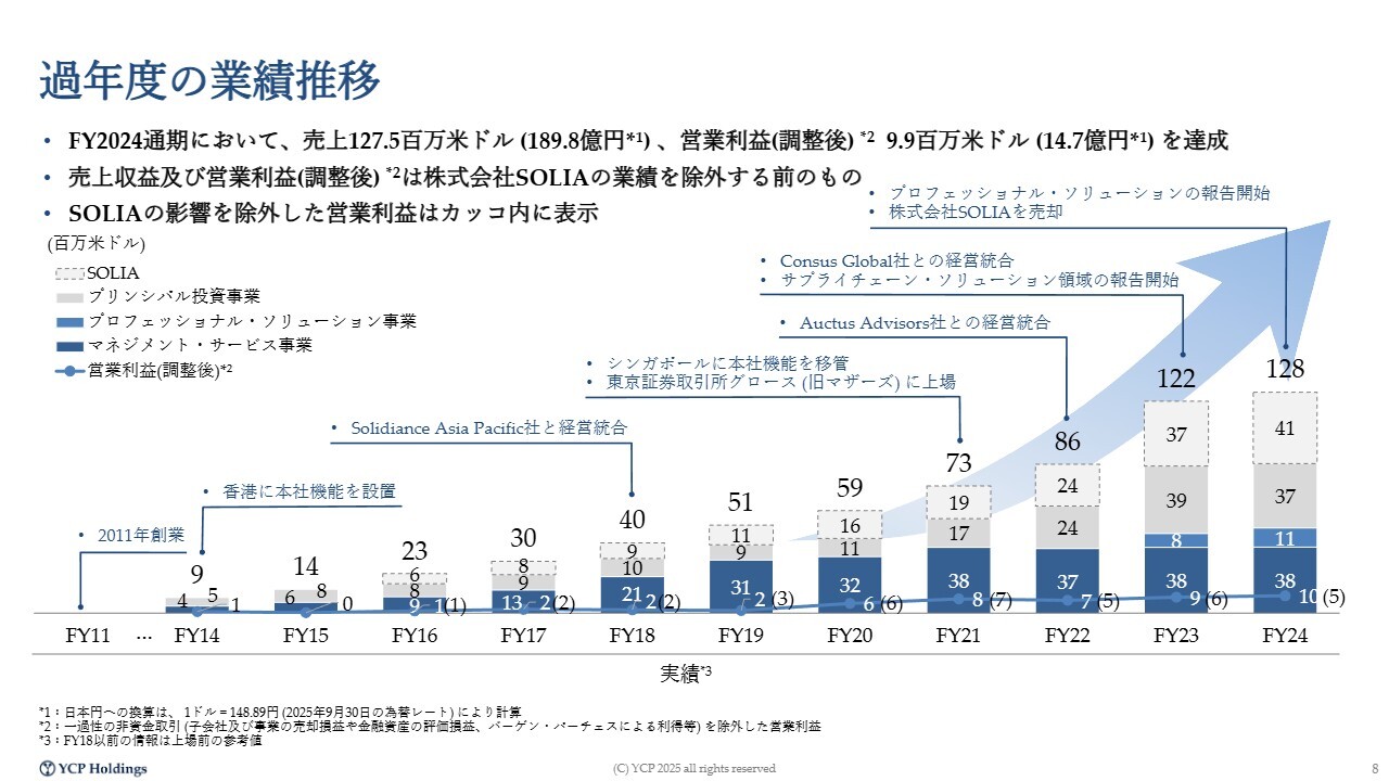 一方、過去の業績を振り返ると収益面で非常にボラティリティが高く、上がったり下がったりしていた状況でした。そのような中、我々が一緒になることで、さまざまなシナジーを期待でき、YCPグループに加わることで業績を飛躍的に伸ばせるのではないかと双方で議論を重ね、盛り上がりながらM&Aに至りました。