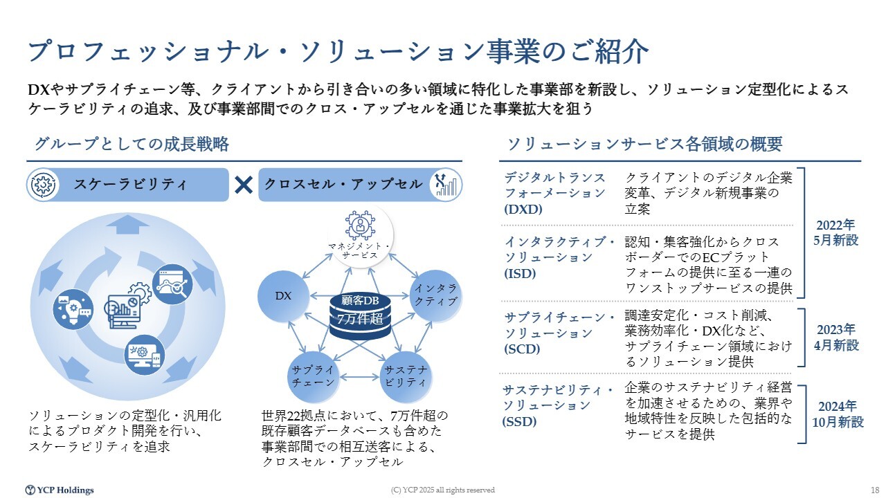 我々としても、この10パーセント程度の成長が健全だと考え、経営を進めていますが、上場以来、それを超える成長速度が期待されていると理解しています。これを実現するために、スライド右側に記載しているプロフェッショナル・ソリューション事業を、2022年から、財務上は2023年から開始し取り組んでいます。