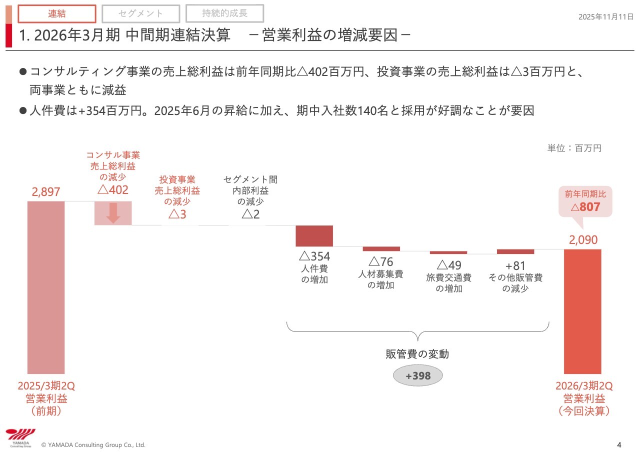 1. 2026年3月期 中間期連結決算 −営業利益の増減要因−