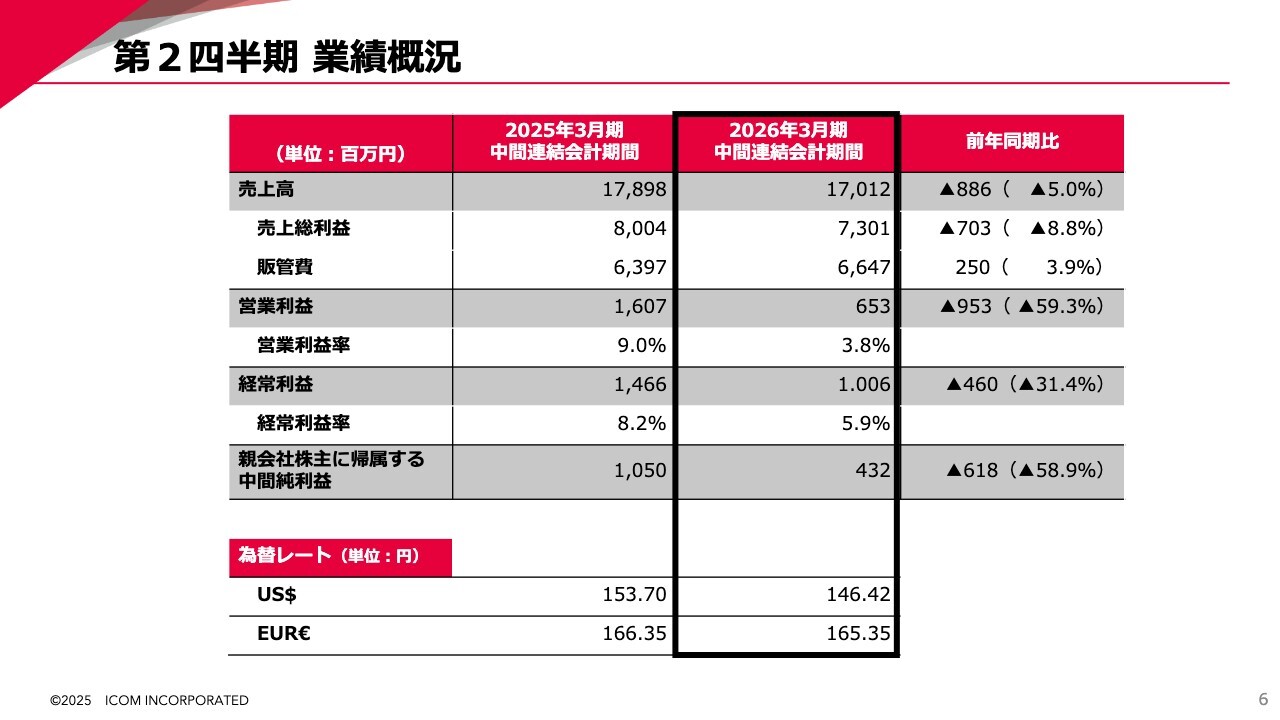 それでは、2026年3月期第2四半期決算発表および今後の見通しについてご説明します。本日の主な説明内容はご覧のとおりです。