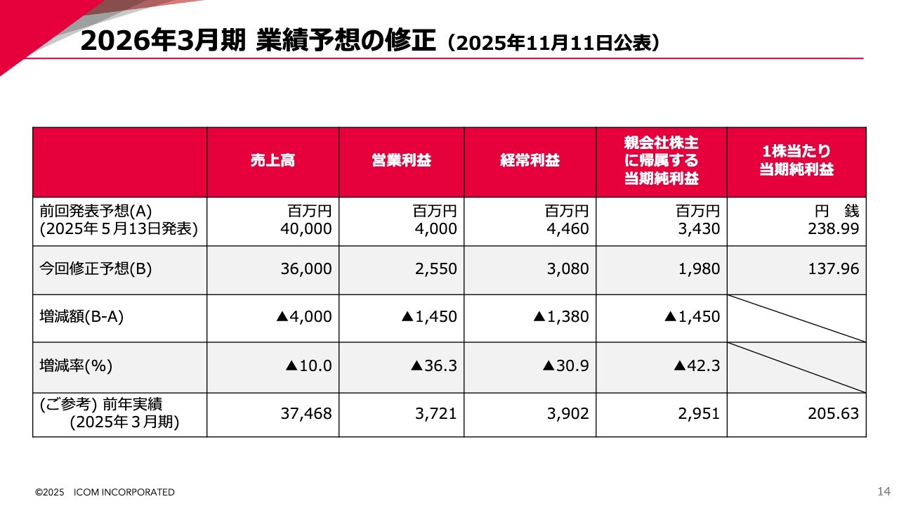 2026年3月期 業績予想の修正(2025年11月11日公表)
