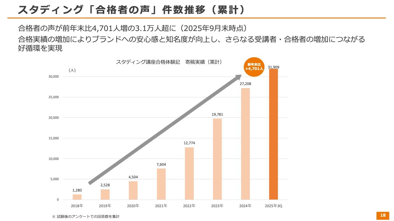 また、現在、難関資格が好調であるため、第3四半期頃に試験日を迎えたことから、続々と「合格者の声」が上がってきています。これらの声をさらに反映すれば、第4四半期においてさらなる成長が期待できると考えています。