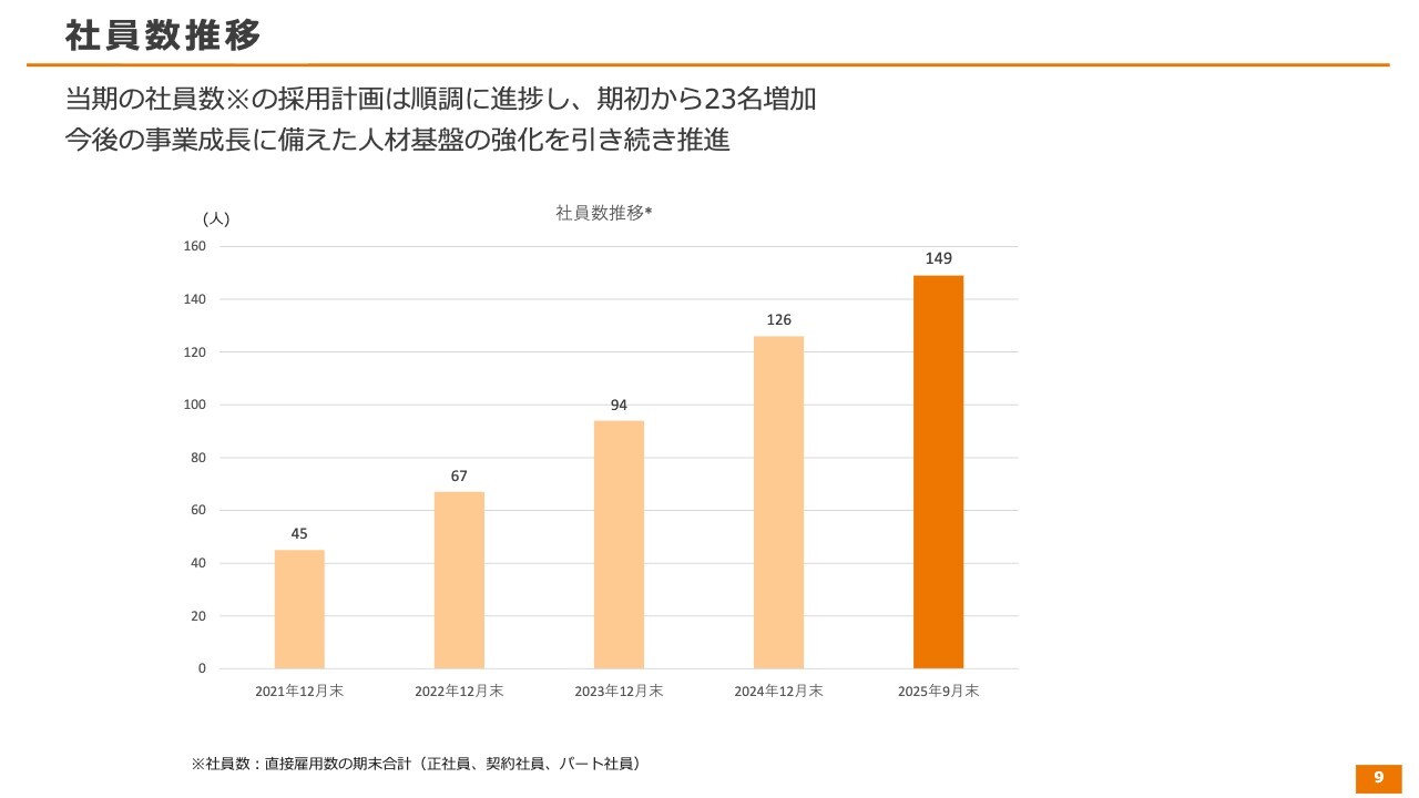 現在、会社では採用を強化しており、順調に優秀な人材の採用を進めています。期初から23名の増加となり、当初想定していた採用をしっかりと達成できています。