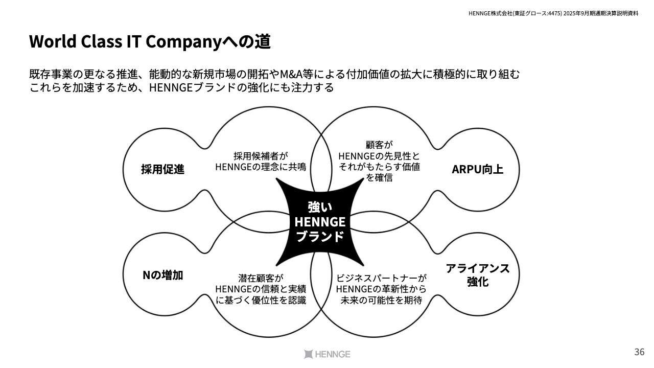 そのために欠かせないのが、強いHENNGEブランドです。強いHENNGEブランドを確立するため、これからも継続的にブランド構築のための活動に注力し、この先の、ARR1,000億円への道筋を確固たるものにしていきたいと思っています。