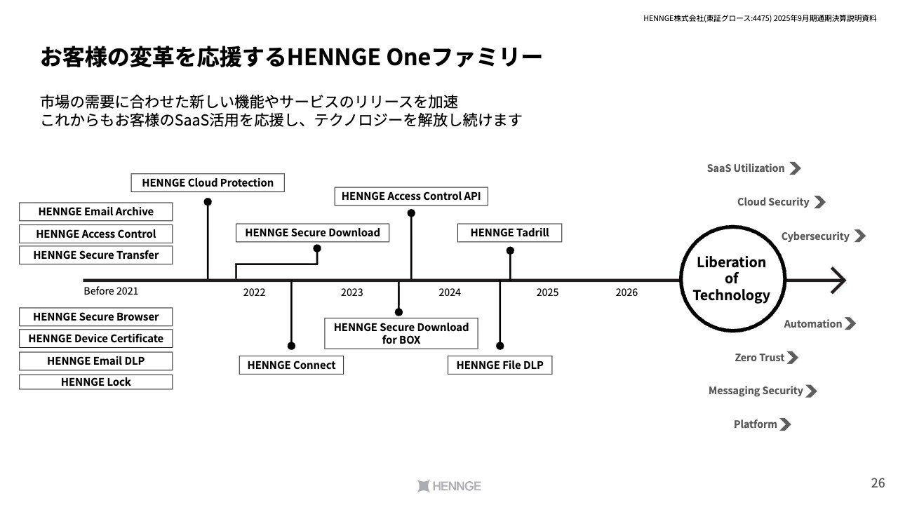 【QAあり】HENNGE、修正予想を達成、26年9月期も増収増益予想 成長投資も積極実施し、29年9月期にARR200億円を目指す